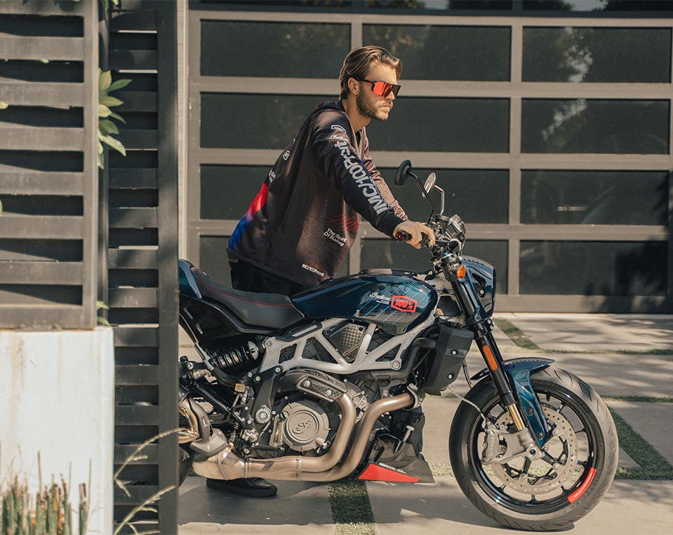 A unique liquid-cooled American V-twin is at the heart of what makes FTR remarkable. Turn up the sound to experience it.